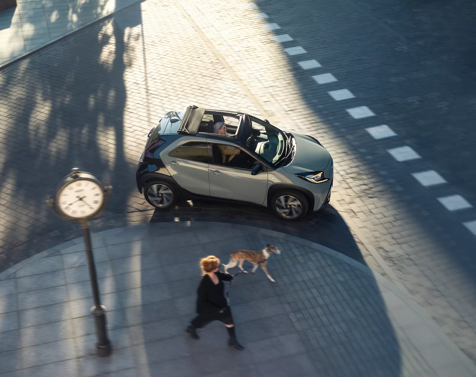 El aire libre representa la libertad total. Abre el atractivo techo de lona del Aygo X Cross para conectarte totalmente con la ciudad a traves de tus sentidos. Deja que el sol acaricie tu rostro, con la melena al viento, y disfruta de las vistas y los sonidos de la bulliciosa vida urbana que te rodea. Deja que entre la luz y recorre las calles con estilo.